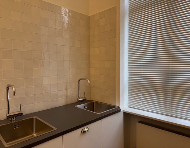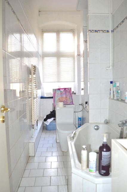 In den Wohnräumen und Fluren ist Laminatboden verlegt, das Bad und die Küche sind gefliest. Die Deckenhöhen der 1905 errichteten Altbauwohnung betragen 3,30m.