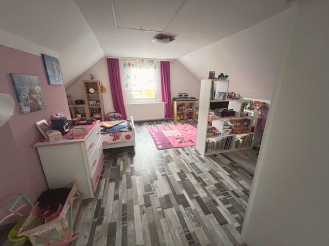 Über eine Holztreppe gelangt man in das Obergeschoss. Hier sind 2 weitere Zimmer gelegen.